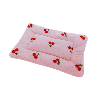 Een heerlijk zacht, roze hondenmat met een speels kersenpatroon.