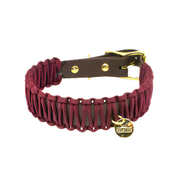 Wandelen in stijl! Deze bordeauxrode paracord halsband is het perfecte accessoire voor jouw chique outfits. Jij en jouw pup zullen het meest modieuze duo van de buurt zijn! 🐶