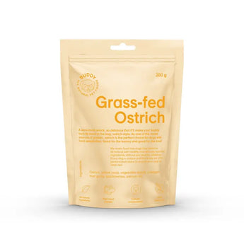 Deze snack is wauw! 🐶 Gemaakt van 100% natuurlijke ingrediënten, met superveel écht struisvogelvlees – mager, licht verteerbaar en boordevol smaak! 🦩💥 Geen gedoe met granen of gluten, gewoon puur smullen zoals de natuur het bedoelt. 🌿